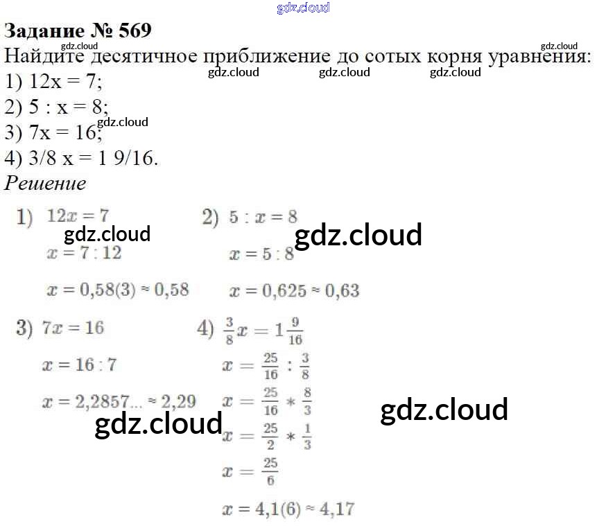 Ответ на задание 569 Учебник Математика за 6 (шестой) класс Мерзляк, Полонский, Якир Алгоритм успеха 2016