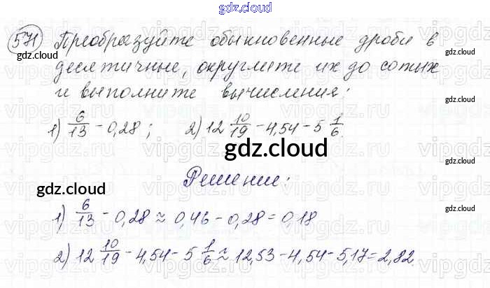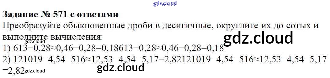 Ответ на задание 571 Учебник Математика за 6 (шестой) класс Мерзляк, Полонский, Якир Алгоритм успеха 2016