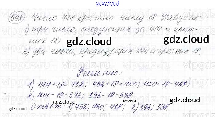 Ответ на задание 598 Учебник Математика за 6 (шестой) класс Мерзляк, Полонский, Якир Алгоритм успеха 2016