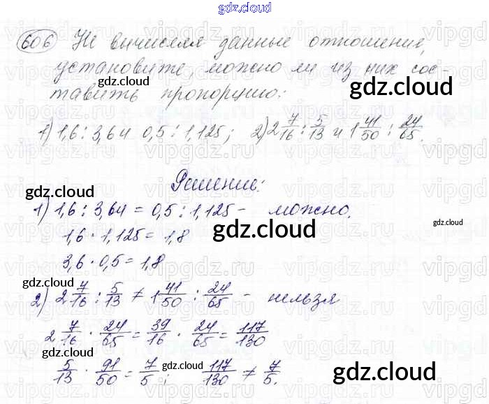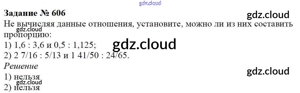 Ответ на задание 606 Учебник Математика за 6 (шестой) класс Мерзляк, Полонский, Якир Алгоритм успеха 2016