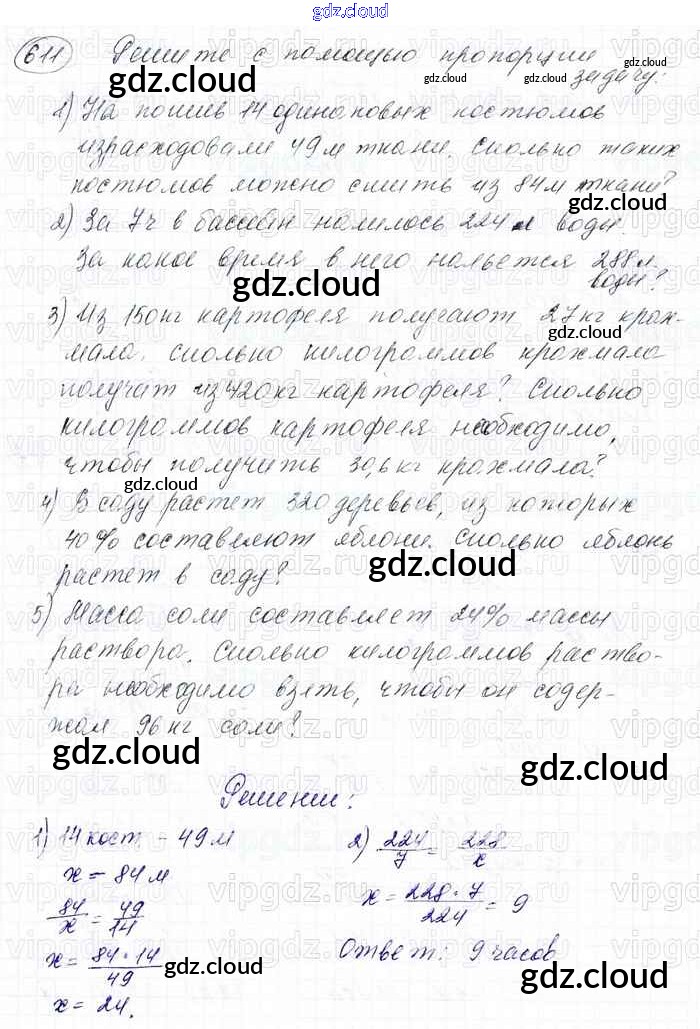 Ответ на задание 611 Учебник Математика за 6 (шестой) класс Мерзляк, Полонский, Якир Алгоритм успеха 2016