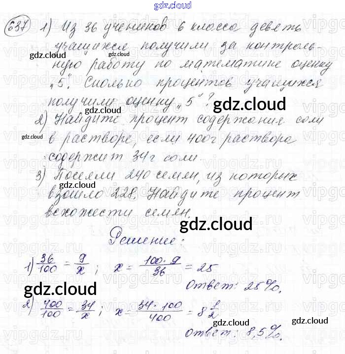 Ответ на задание 637 Учебник Математика за 6 (шестой) класс Мерзляк, Полонский, Якир Алгоритм успеха 2016