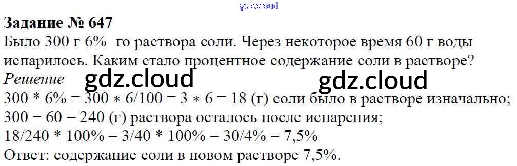 Ответ на задание 647 Учебник Математика за 6 (шестой) класс Мерзляк, Полонский, Якир Алгоритм успеха 2016