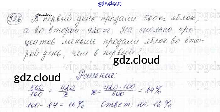 Ответ на задание 726 Учебник Математика за 6 (шестой) класс Мерзляк, Полонский, Якир Алгоритм успеха 2016