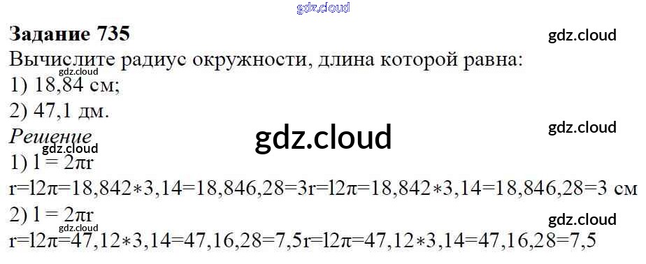 Ответ на задание 735 Учебник Математика за 6 (шестой) класс Мерзляк, Полонский, Якир Алгоритм успеха 2016