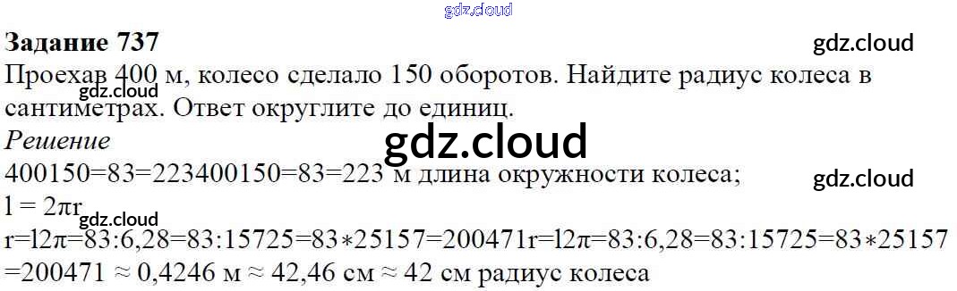 Ответ на задание 737 Учебник Математика за 6 (шестой) класс Мерзляк, Полонский, Якир Алгоритм успеха 2016
