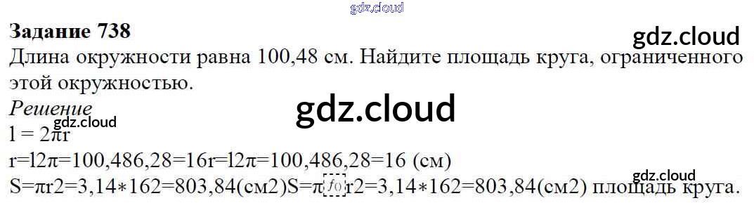 Ответ на задание 738 Учебник Математика за 6 (шестой) класс Мерзляк, Полонский, Якир Алгоритм успеха 2016