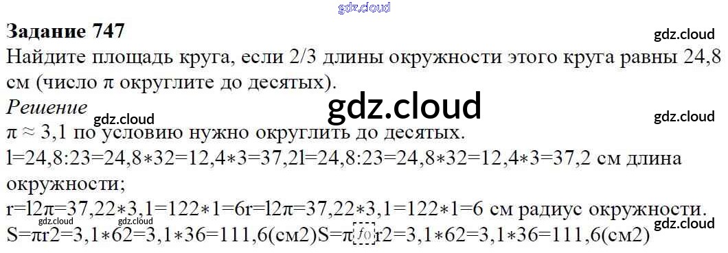 Ответ на задание 747 Учебник Математика за 6 (шестой) класс Мерзляк, Полонский, Якир Алгоритм успеха 2016