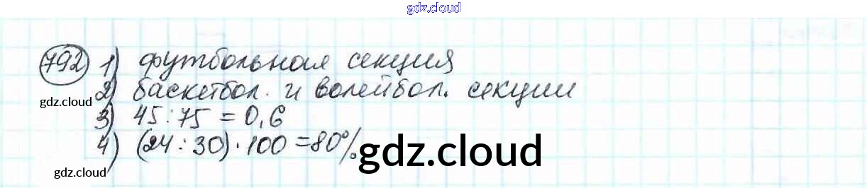 Ответ на задание 792 Учебник Математика за 6 (шестой) класс Мерзляк, Полонский, Якир Алгоритм успеха 2016