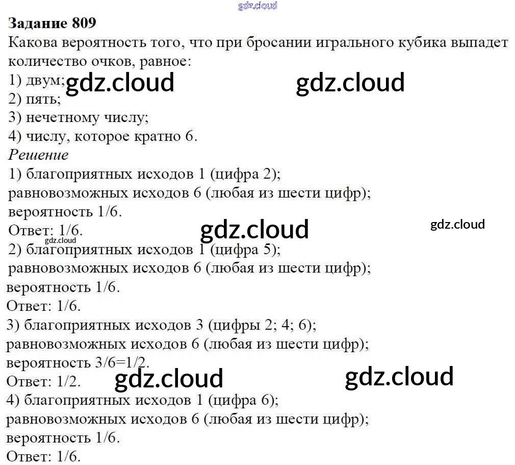 Ответ на задание 809 Учебник Математика за 6 (шестой) класс Мерзляк, Полонский, Якир Алгоритм успеха 2016
