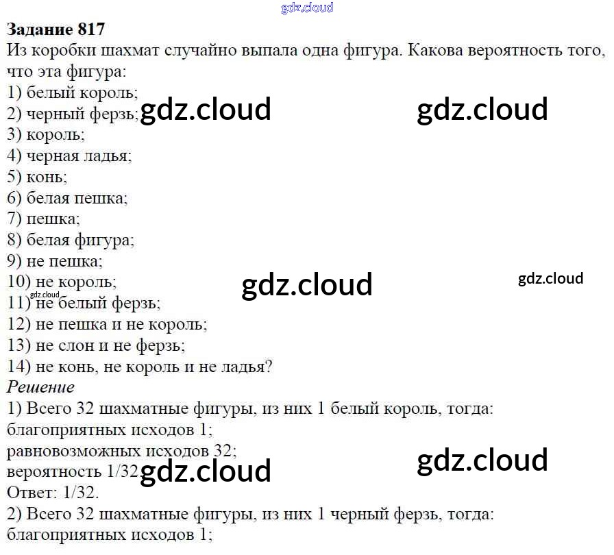 Ответ на задание 817 Учебник Математика за 6 (шестой) класс Мерзляк, Полонский, Якир Алгоритм успеха 2016