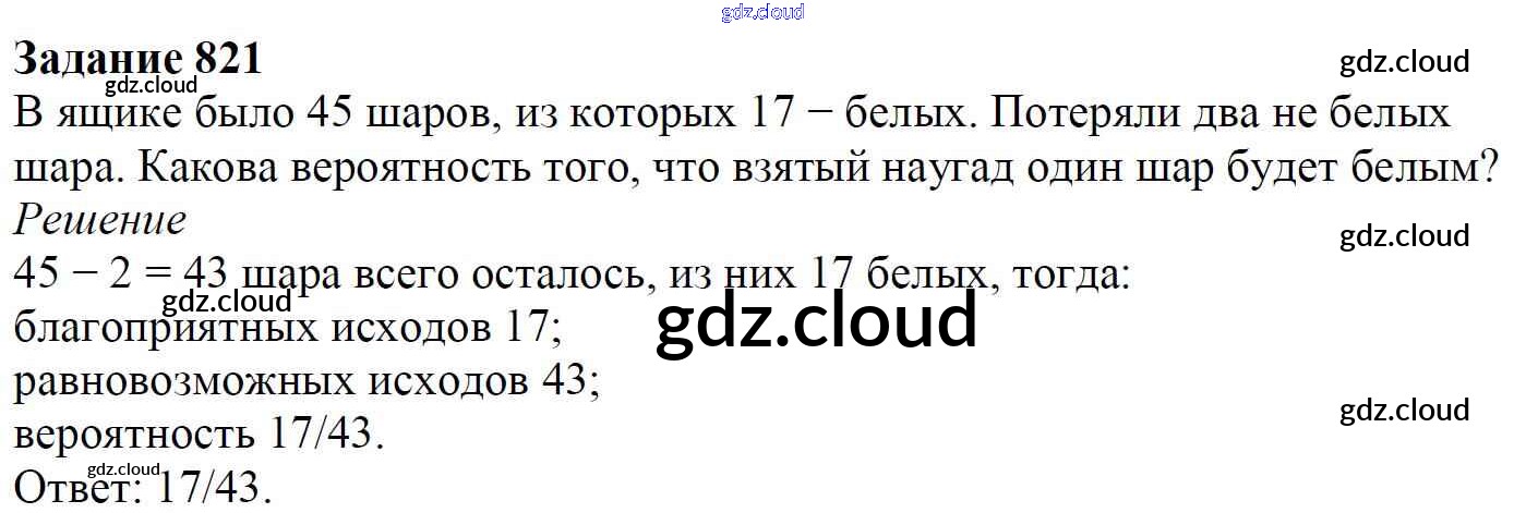 Ответ на задание 821 Учебник Математика за 6 (шестой) класс Мерзляк, Полонский, Якир Алгоритм успеха 2016