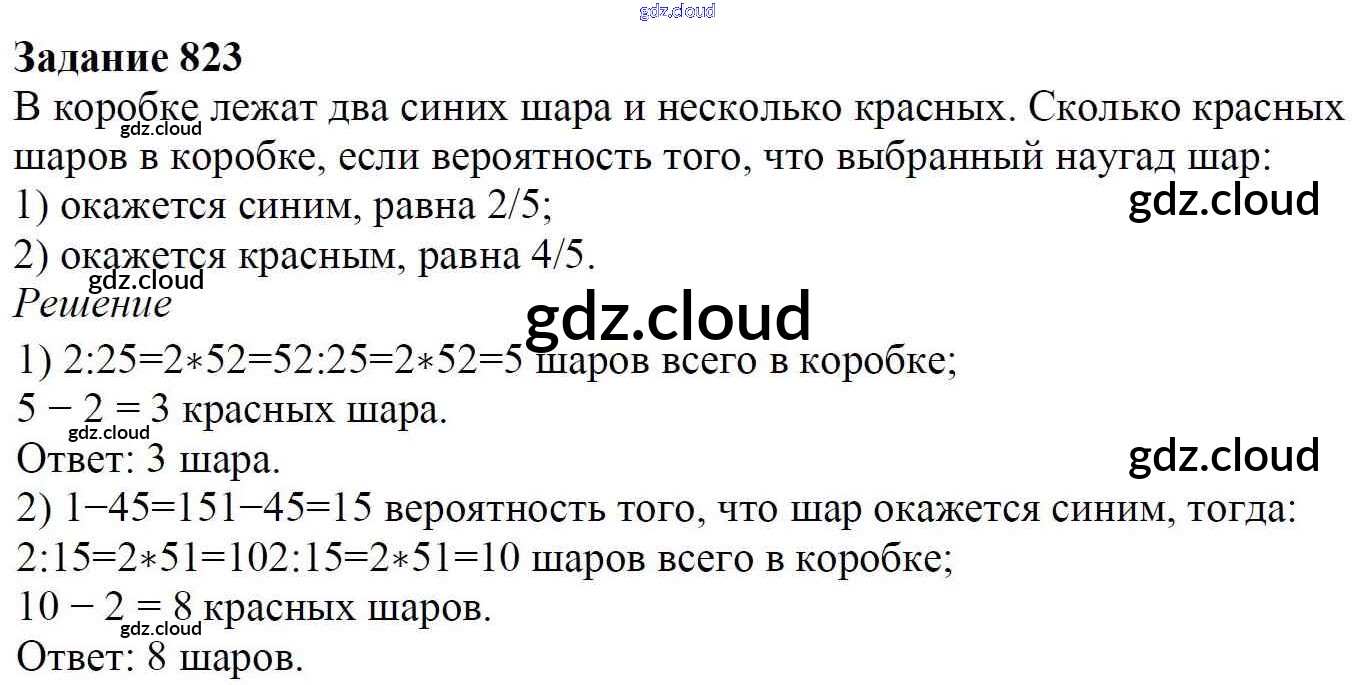 Ответ на задание 823 Учебник Математика за 6 (шестой) класс Мерзляк, Полонский, Якир Алгоритм успеха 2016