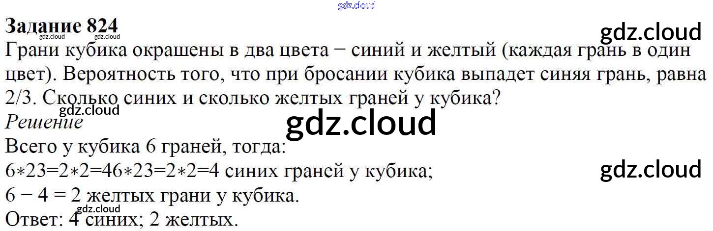 Ответ на задание 824 Учебник Математика за 6 (шестой) класс Мерзляк, Полонский, Якир Алгоритм успеха 2016
