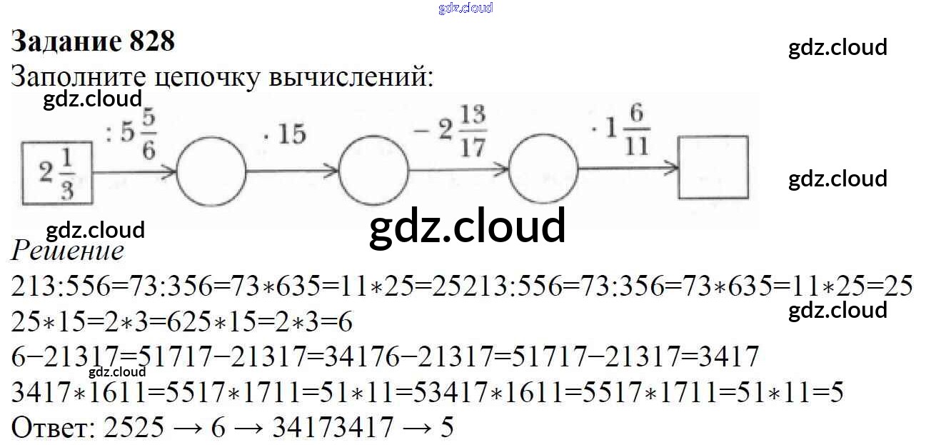Ответ на задание 828 Учебник Математика за 6 (шестой) класс Мерзляк, Полонский, Якир Алгоритм успеха 2016