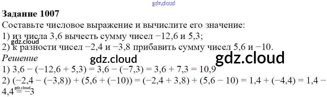 Ответ на задание 1007 Учебник Математика за 6 (шестой) класс Мерзляк, Полонский, Якир Алгоритм успеха 2016