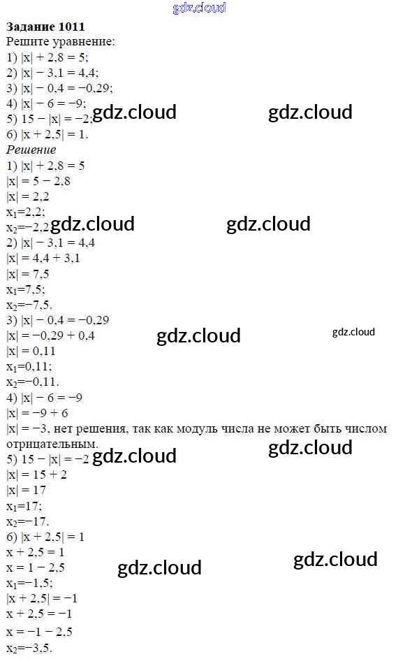 Ответ на задание 1011 Учебник Математика за 6 (шестой) класс Мерзляк, Полонский, Якир Алгоритм успеха 2016