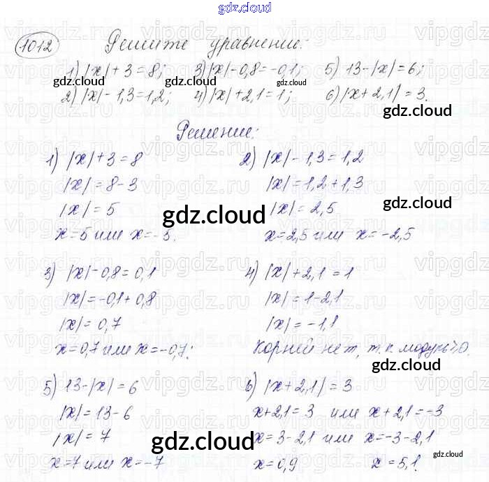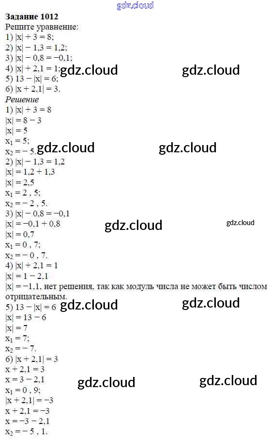 Ответ на задание 1012 Учебник Математика за 6 (шестой) класс Мерзляк, Полонский, Якир Алгоритм успеха 2016