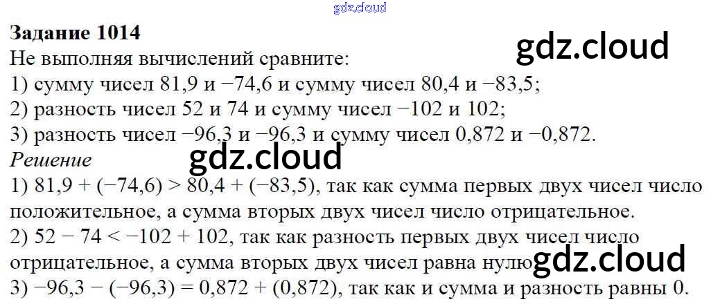 Ответ на задание 1014 Учебник Математика за 6 (шестой) класс Мерзляк, Полонский, Якир Алгоритм успеха 2016