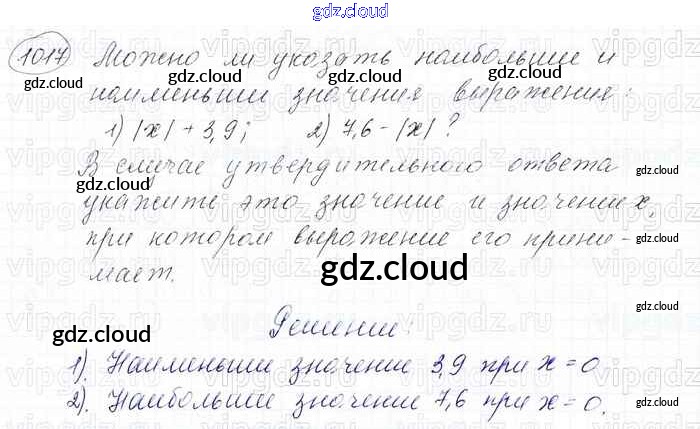 Ответ на задание 1017 Учебник Математика за 6 (шестой) класс Мерзляк, Полонский, Якир Алгоритм успеха 2016