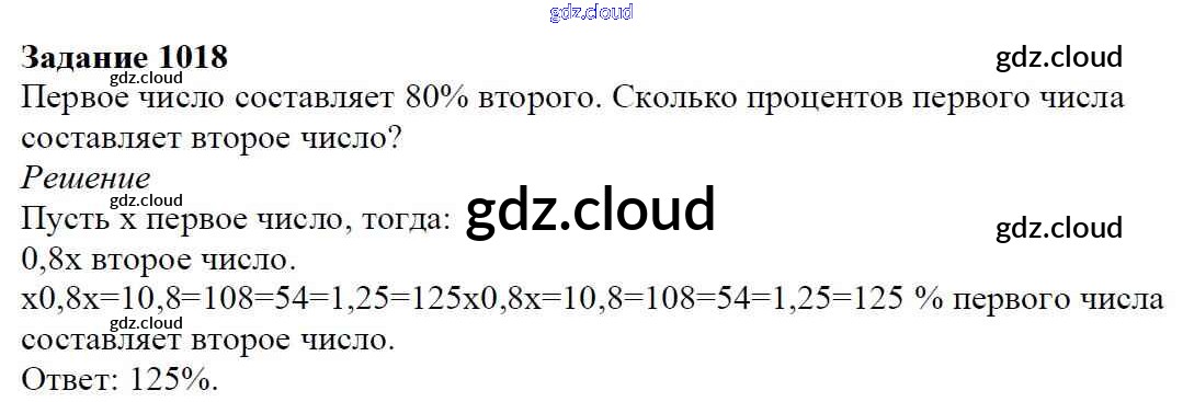 Ответ на задание 1018 Учебник Математика за 6 (шестой) класс Мерзляк, Полонский, Якир Алгоритм успеха 2016