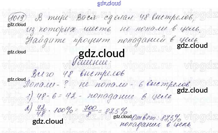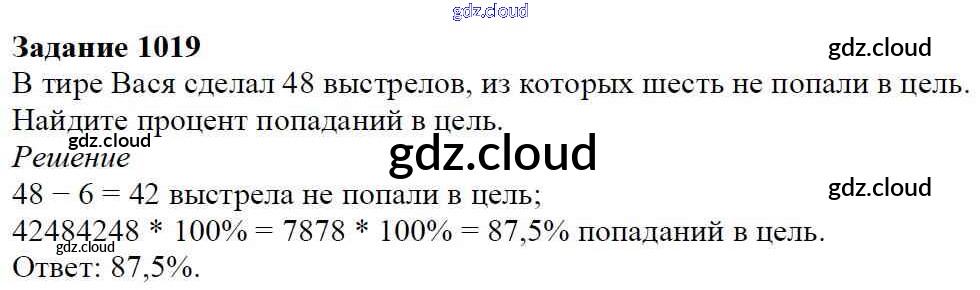 Ответ на задание 1019 Учебник Математика за 6 (шестой) класс Мерзляк, Полонский, Якир Алгоритм успеха 2016