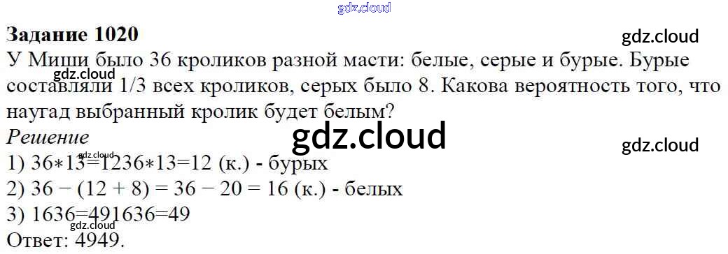 Ответ на задание 1020 Учебник Математика за 6 (шестой) класс Мерзляк, Полонский, Якир Алгоритм успеха 2016
