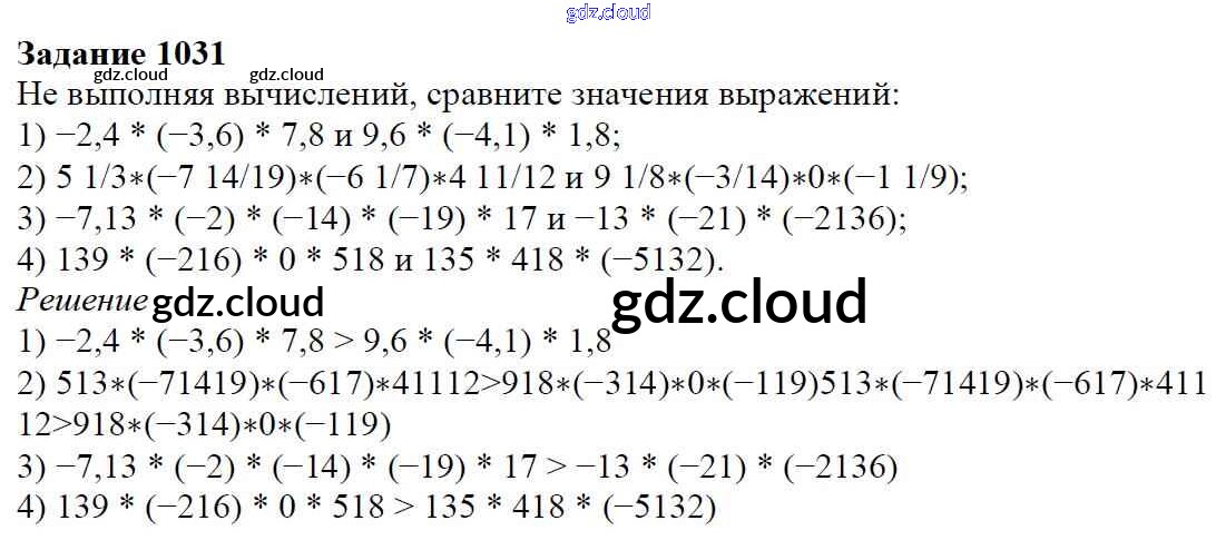 Ответ на задание 1031 Учебник Математика за 6 (шестой) класс Мерзляк, Полонский, Якир Алгоритм успеха 2016
