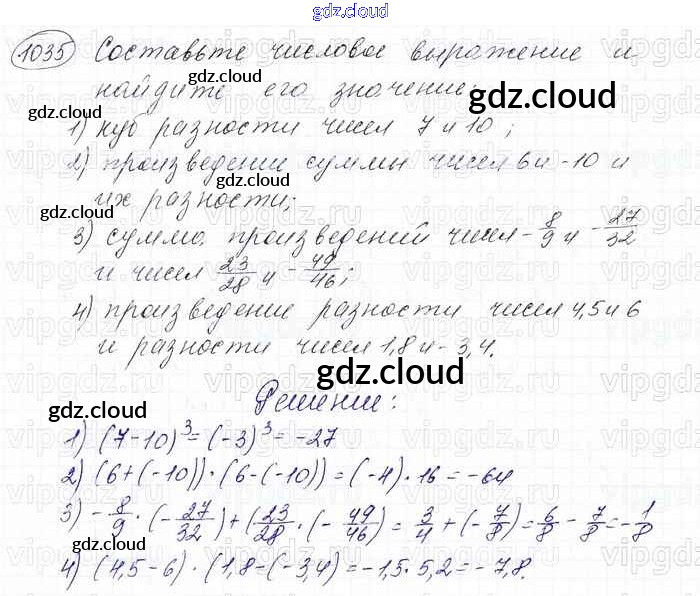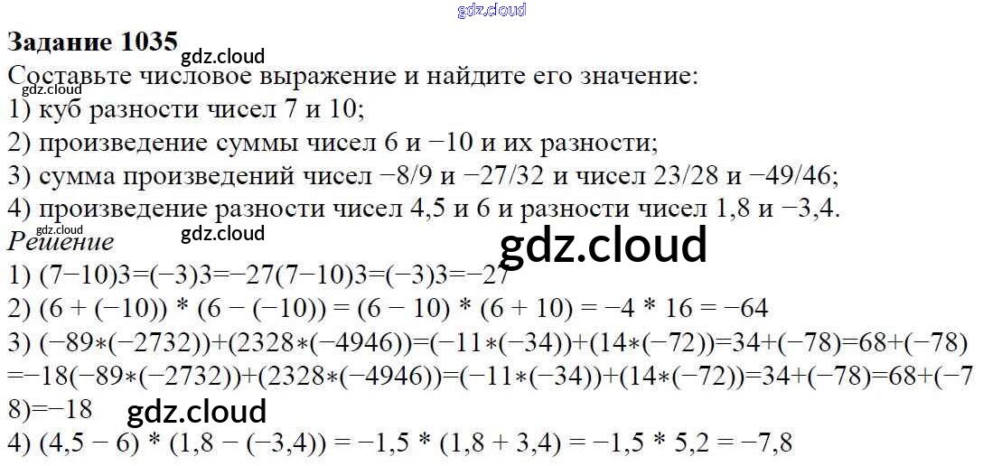 Ответ на задание 1035 Учебник Математика за 6 (шестой) класс Мерзляк, Полонский, Якир Алгоритм успеха 2016