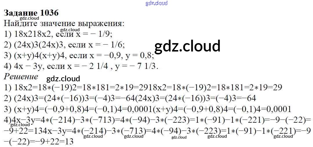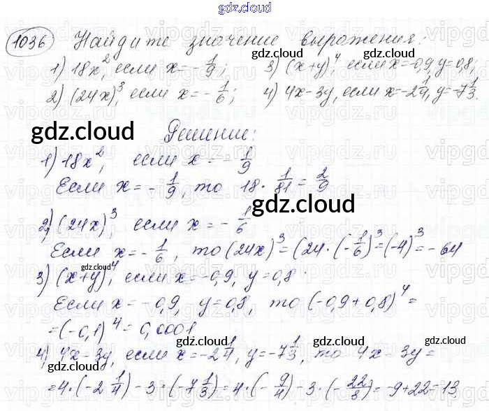 Ответ на задание 1036 Учебник Математика за 6 (шестой) класс Мерзляк, Полонский, Якир Алгоритм успеха 2016