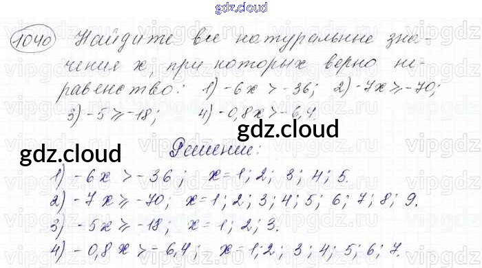 Ответ на задание 1040 Учебник Математика за 6 (шестой) класс Мерзляк, Полонский, Якир Алгоритм успеха 2016