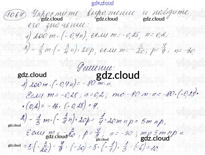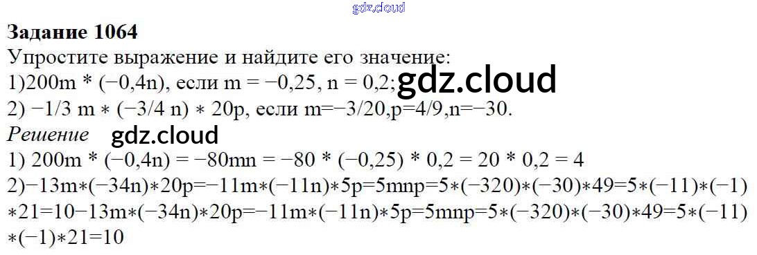 Ответ на задание 1064 Учебник Математика за 6 (шестой) класс Мерзляк, Полонский, Якир Алгоритм успеха 2016