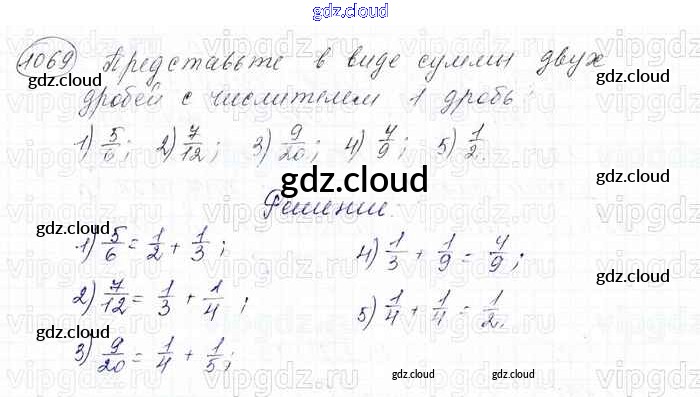 Ответ на задание 1069 Учебник Математика за 6 (шестой) класс Мерзляк, Полонский, Якир Алгоритм успеха 2016