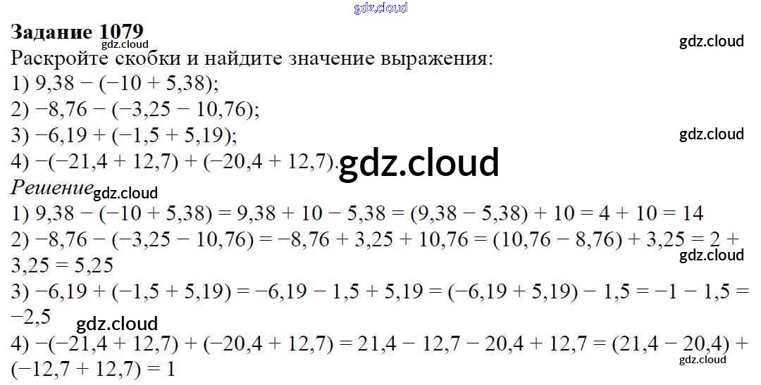Ответ на задание 1079 Учебник Математика за 6 (шестой) класс Мерзляк, Полонский, Якир Алгоритм успеха 2016