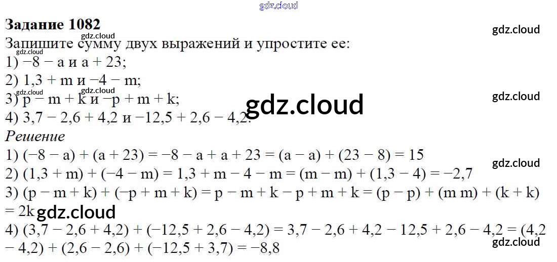 Ответ на задание 1082 Учебник Математика за 6 (шестой) класс Мерзляк, Полонский, Якир Алгоритм успеха 2016