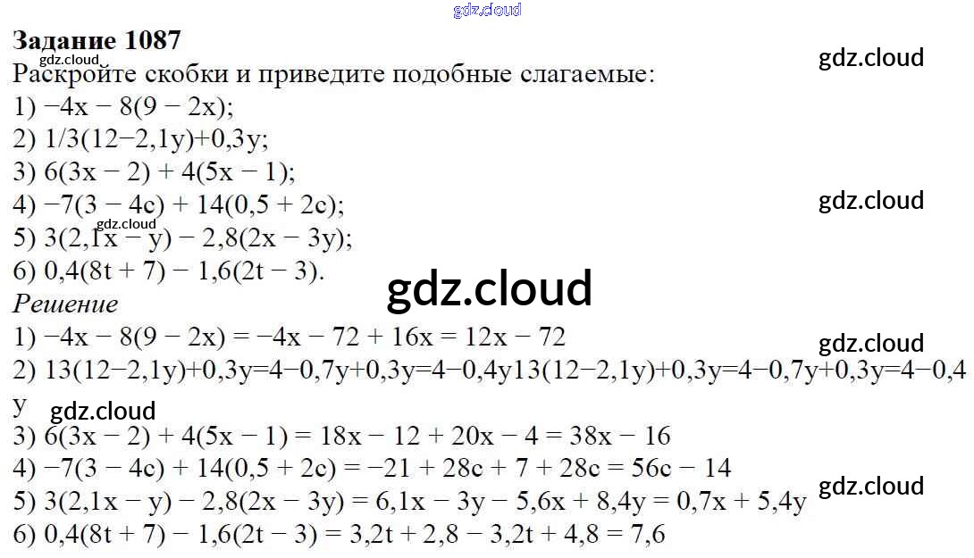 Ответ на задание 1087 Учебник Математика за 6 (шестой) класс Мерзляк, Полонский, Якир Алгоритм успеха 2016