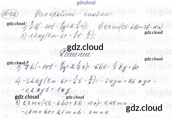 Ответ на задание 1092 Учебник Математика за 6 (шестой) класс Мерзляк, Полонский, Якир Алгоритм успеха 2016