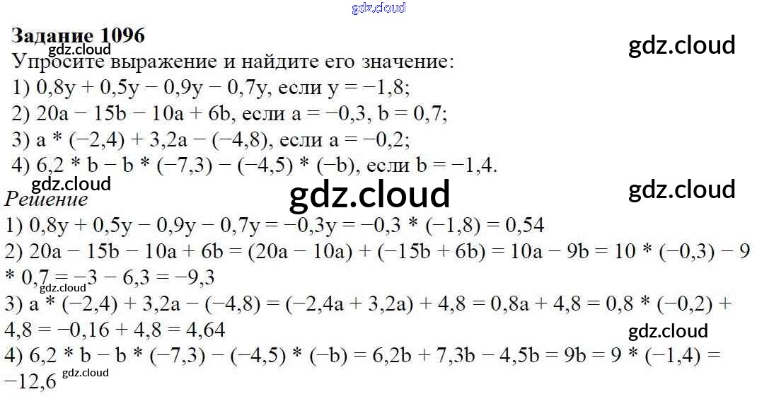 Ответ на задание 1096 Учебник Математика за 6 (шестой) класс Мерзляк, Полонский, Якир Алгоритм успеха 2016
