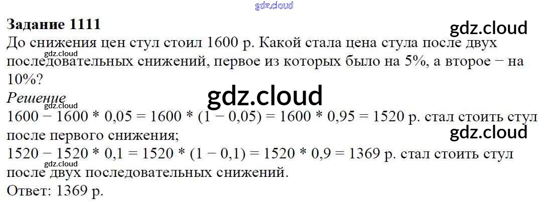 Ответ на задание 1111 Учебник Математика за 6 (шестой) класс Мерзляк, Полонский, Якир Алгоритм успеха 2016