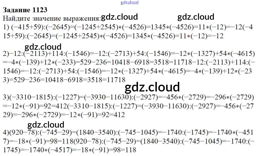 Ответ на задание 1123 Учебник Математика за 6 (шестой) класс Мерзляк, Полонский, Якир Алгоритм успеха 2016