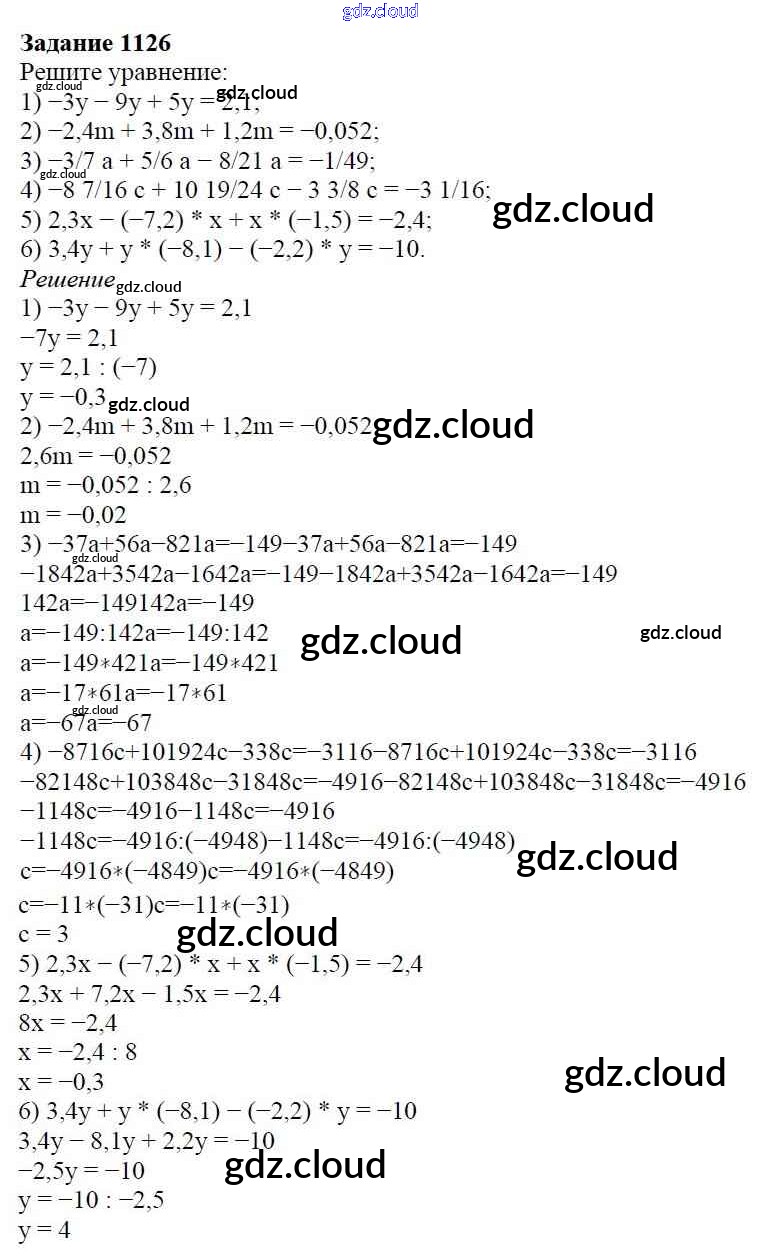 Ответ на задание 1126 Учебник Математика за 6 (шестой) класс Мерзляк, Полонский, Якир Алгоритм успеха 2016