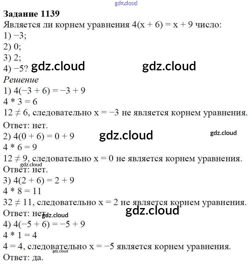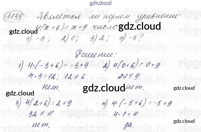 Ответ на задание 1139 Учебник Математика за 6 (шестой) класс Мерзляк, Полонский, Якир Алгоритм успеха 2016