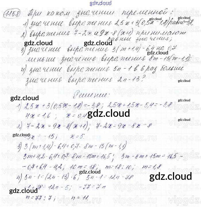 Ответ на задание 1158 Учебник Математика за 6 (шестой) класс Мерзляк, Полонский, Якир Алгоритм успеха 2016