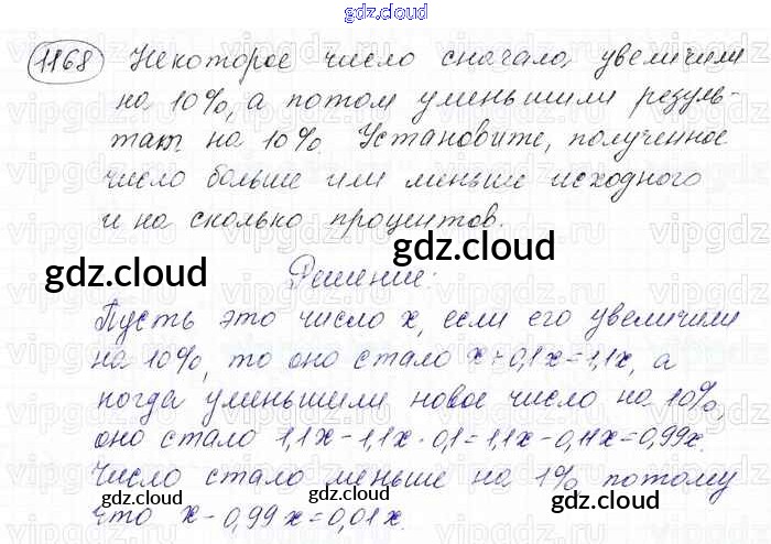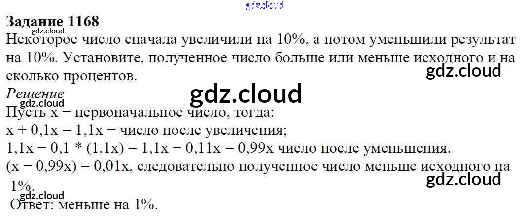 Ответ на задание 1168 Учебник Математика за 6 (шестой) класс Мерзляк, Полонский, Якир Алгоритм успеха 2016