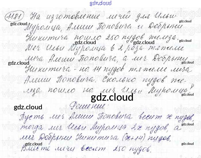 Ответ на задание 1181 Учебник Математика за 6 (шестой) класс Мерзляк, Полонский, Якир Алгоритм успеха 2016