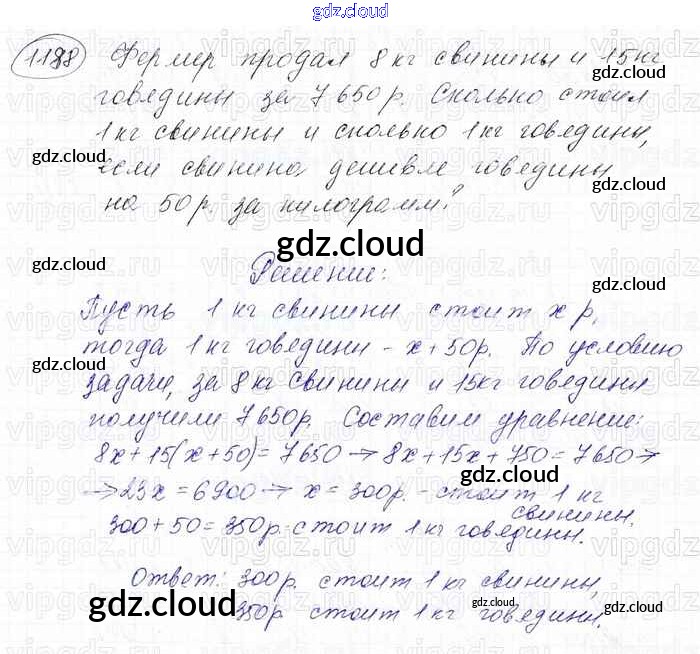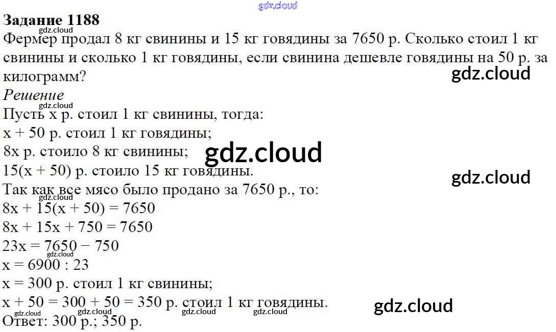 Ответ на задание 1188 Учебник Математика за 6 (шестой) класс Мерзляк, Полонский, Якир Алгоритм успеха 2016