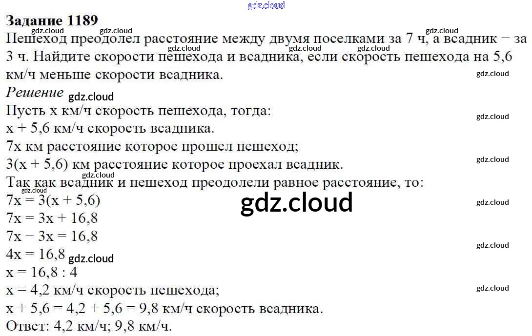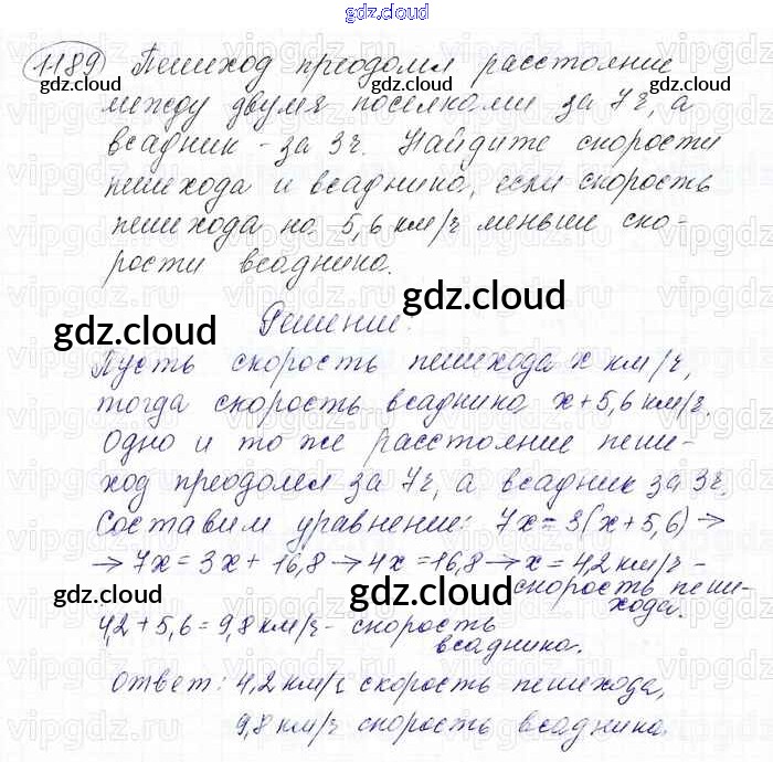 Ответ на задание 1189 Учебник Математика за 6 (шестой) класс Мерзляк, Полонский, Якир Алгоритм успеха 2016
