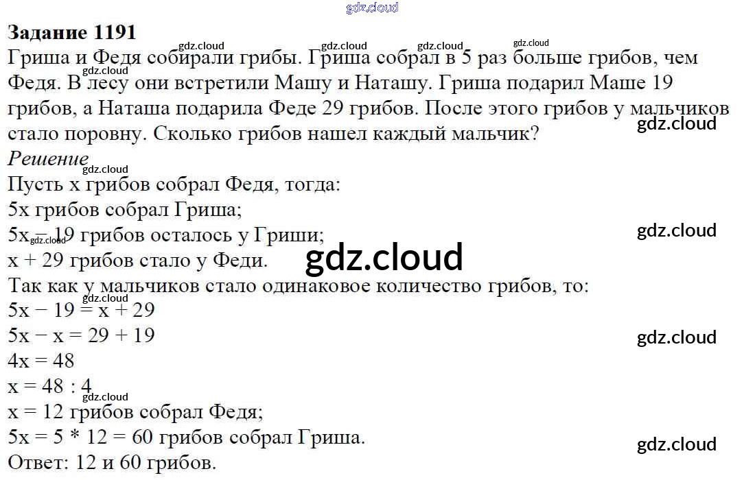 Ответ на задание 1191 Учебник Математика за 6 (шестой) класс Мерзляк, Полонский, Якир Алгоритм успеха 2016