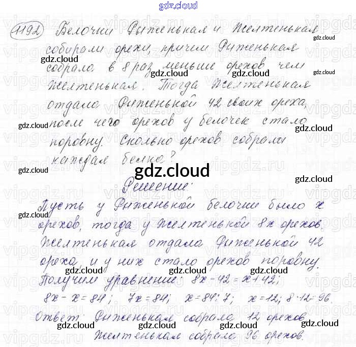 Ответ на задание 1192 Учебник Математика за 6 (шестой) класс Мерзляк, Полонский, Якир Алгоритм успеха 2016