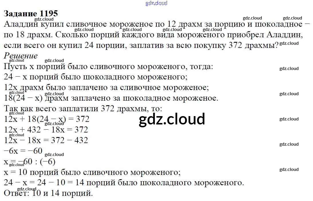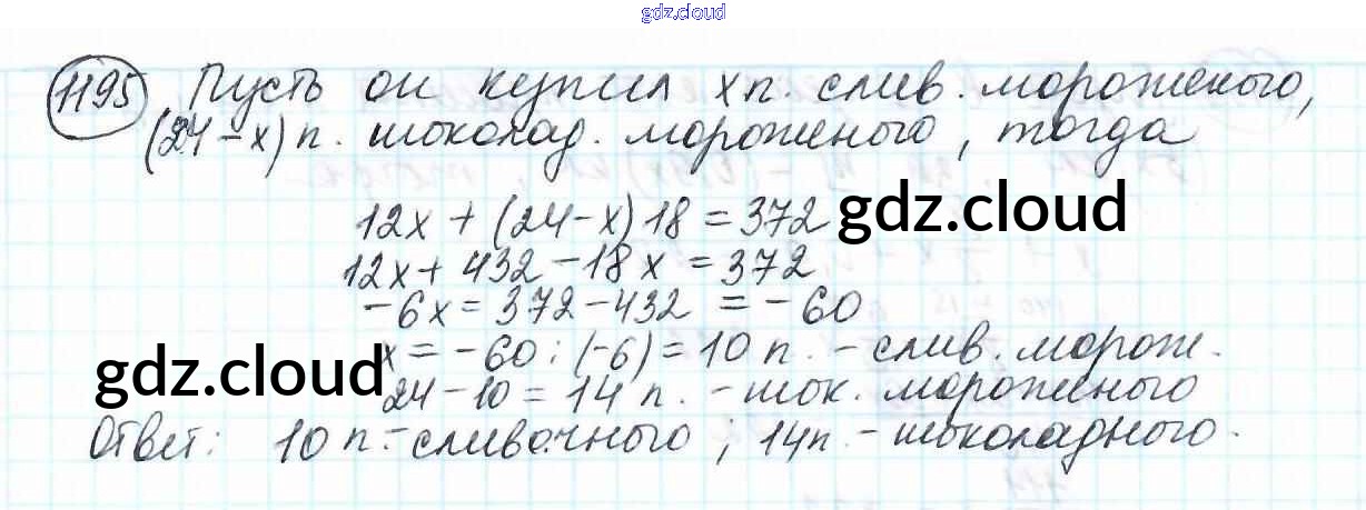 Ответ на задание 1195 Учебник Математика за 6 (шестой) класс Мерзляк, Полонский, Якир Алгоритм успеха 2016